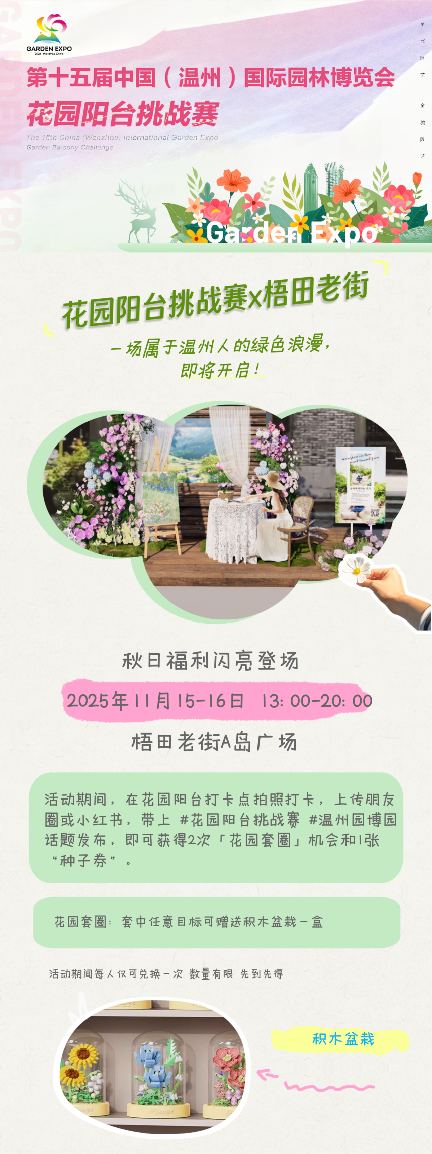 温州园博会花园阳台挑战赛×梧田老街!一场属于温州人的绿色浪漫,即将开启!