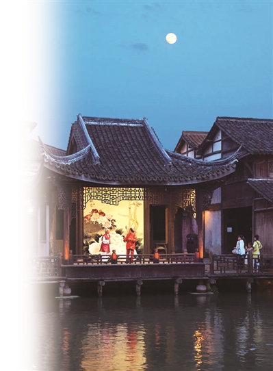 非遗创新是核心亮点。蓝印花布是其中代表,它不再局限于布艺的展示,并设体验区供游客刻板、刮浆、染色,亲手感受工艺魅力;高杆船表演与蚕桑文化景观结合,让这一濒危技艺获得新的舞台;戏台更成为多元文化展演的舞台,乌镇伞舞、濮院时尚秀、盐官潮秀、西塘汉服表演等轮番登场,绘就古今辉映的文化长卷。