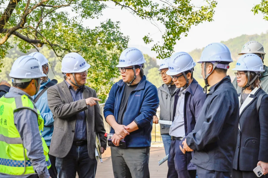 为加快推进温州园博园项目建设,切实提升工程各环节质量与效率,11月26日下午,市园博办常务副主任、市综合行政执法局党组书记、局长黄悌敏率市专家指导组,会同市住建局等相关部门深入温州园博园建设现场,开展技术指导工作。黄悌敏一行实地走访了“一阁两馆十二景”等标志性建筑及景观节点,详细了解各城市展园建设进展与配套工程施工质量,并就关键环节提出指导意见。