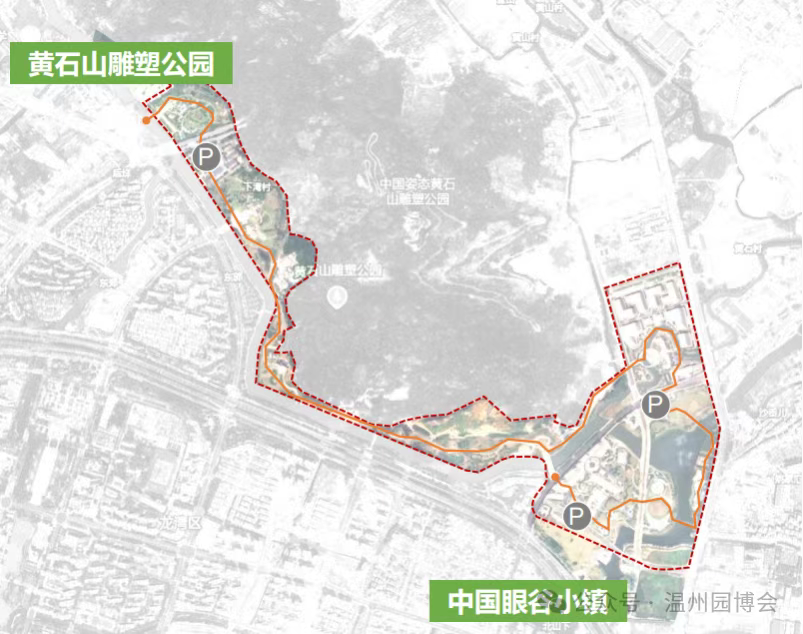 龙湾分会场选址设在黄石山公园和中国眼谷小镇。创新实践“城园一体”理念,通过一条游览动线有机连接黄石山公园“基础会场”与中国眼谷小镇“扩展会场”。