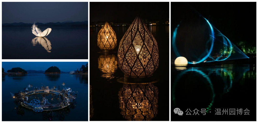 龙湾分会场创新探索“产业资源艺术化”,充分发挥全国首个眼视光产业创新综合体“中国眼谷”优势,整合眼谷小镇室内展厅、研发中心等九大场地,邀请国内外艺术大师,从地面、水上分别布置眼健康、眼医学、眼艺术等光影雕塑,向全国游客全面展现龙湾眼健康产业特色和创新精神。