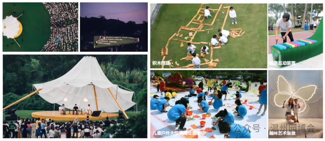 龙湾分会场还探索“全龄覆盖、全民共享”的策展机制,面向“老、中、青、幼”所有年龄段的市民和游客,构建零门槛、全年龄、沉浸式的艺术体验空间,推出夜间雕塑展览、光影艺术装置展览、草坪音乐会、摄影展、艺术市集等,联合医院开展青少年护眼公益研学,让“家门口”的园博会成为龙湾人民幸福生活的生动注脚。