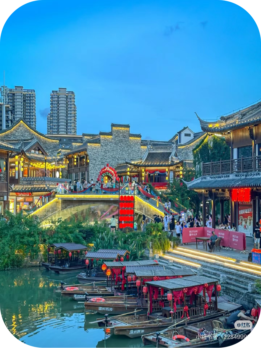 比如亮化夜景,点亮夜间塘河。采用“见光不见灯”设计,重点亮化南湖大桥、万象桥等桥梁及温瑞主塘河(南湖大桥至荷塘桥段);利用灯光营造建筑倒影的动态效果,建立智能照明控制系统,兼顾节能与美观,打造安全、舒适的夜间光环境。