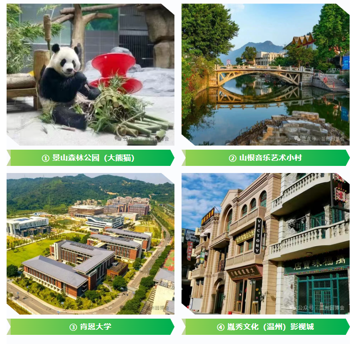 水岸共生(瓯海)分会场选址,以塘河沿线——梧田老街至青灯石刻博物馆为脉络,设置景山森林公园动物园、山根音乐艺术小村+温州乐园、肯恩大学、胤秀文化(温州)影视城4个博览点。