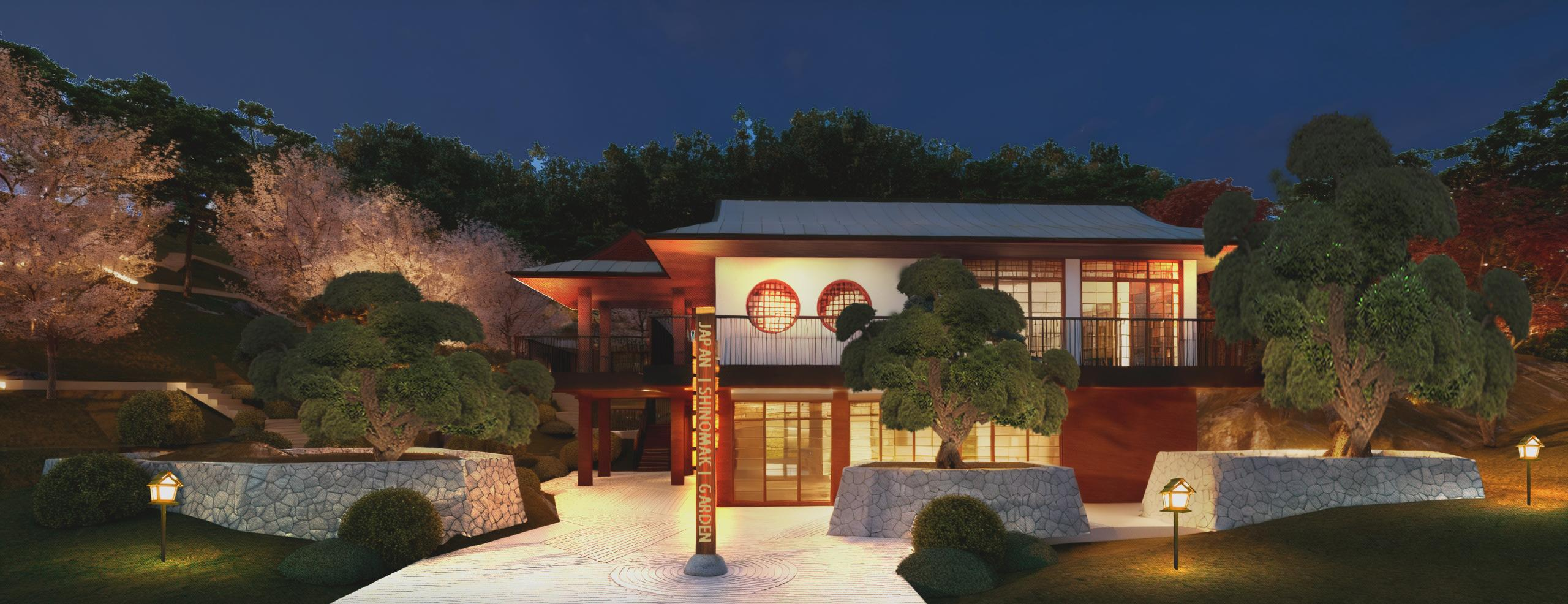 为了让游客沉浸式感受移步换景的绿地景致,设计团队在不同区域密植各类植物。入口广场,将栽下石卷市的市树日本黑松;沿石阶向上,樱花树逐渐出现。无论站在园外,还是走到园内,只要看到樱花,人们就能自然把这里与日式园林联系起来;展园原生树木,也被统一移栽到主建筑后山中段,呈现绿意之美。考虑到温州气候,设计团队还特别选用樟树、竹子等本土品种,兼顾文化意义和适生性,让本地游客既熟悉又新鲜。