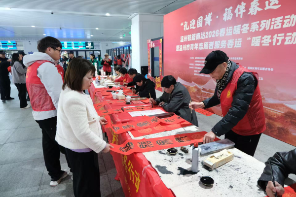 年味,不仅在缤纷的体验里,更流淌在细微的服务中。站内,身披红色马甲的志愿者身影随处可见。他们或耐心解答问询,或细心引导方向,或主动搀扶老人、帮提行李……“请问我身份证忘带了要怎么办理?”“请问自动取票机怎么操作?”面对络绎不绝的询问,他们总报以热情的笑容和准确的指引。这些来自“温心汇”志愿者服务联盟的志愿者,早已是车站里一道熟悉的风景。这个由温州铁路南站旅客之家牵头组建的联盟,如今已凝聚了60支常态化服务队伍,年均开展各类活动超千场,将便利与温暖送至超过24万人次旅客的身边。