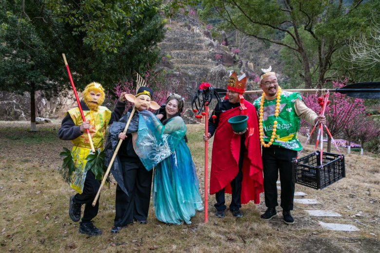 开幕当天,汉服游园、人偶NPC互动、西游主题情景剧等轮番上演,吸引众多游客打卡拍照。永嘉书院运营经理杨荣介绍,情景剧由书院工作人员出演,“反响不错,计划接下来再编排一些情景剧演出。”杨荣说。景区内还提供汉服出租服务,游客可以穿上汉服漫步梅林打卡拍照,“我们在2022年引进合作方提供汉服出租服务,来满足游客的需求。”杨荣介绍。