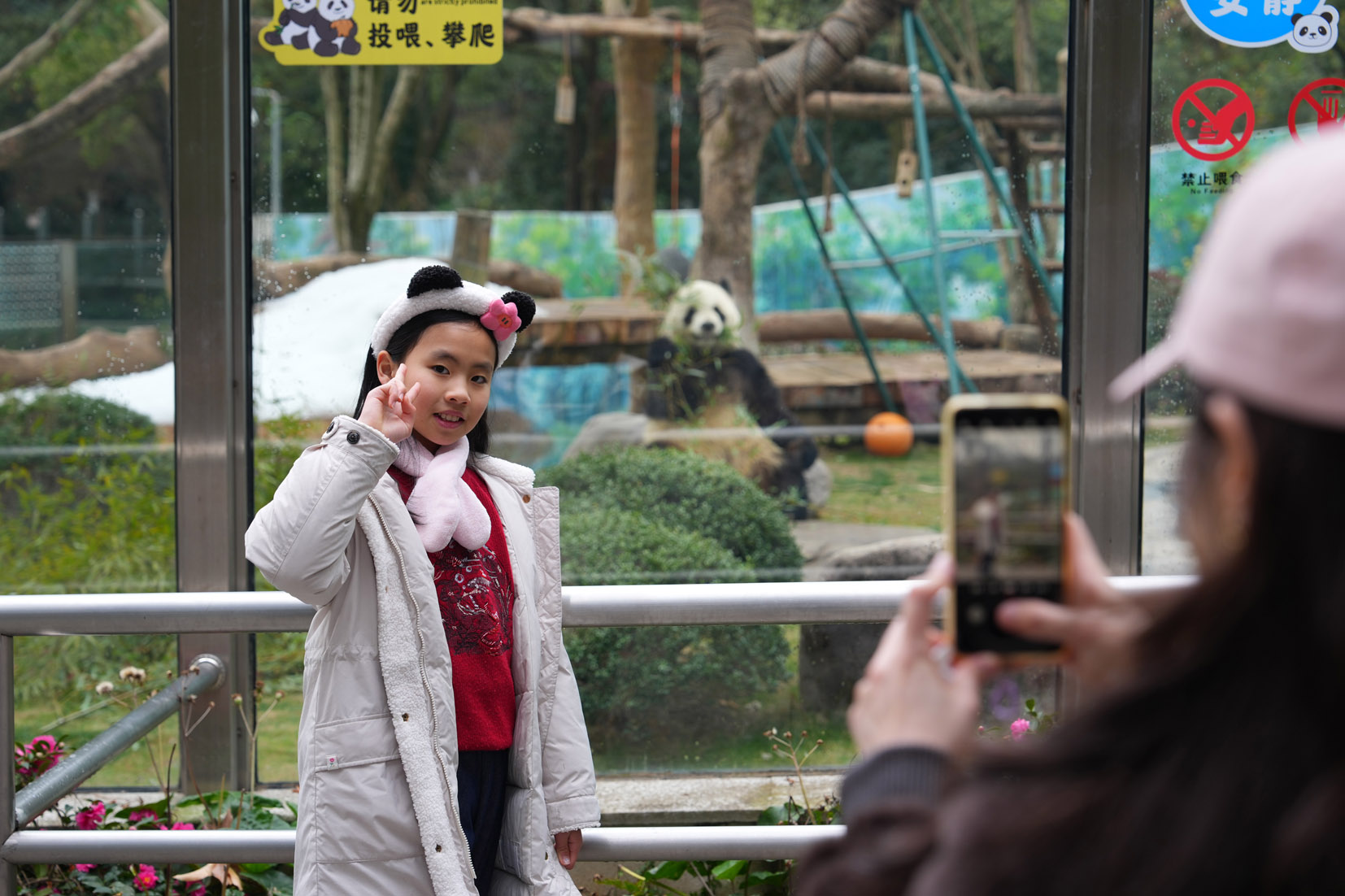 动物园工作人员还告诉记者,早上8、9点是大熊猫外出活动最活跃的时候,也是市民观赏大熊猫的最佳时间。“明星兄妹”俩性格活泼,每次出场,不少“独门绝技”常引得游客捧腹大笑。就拿吃竹子来讲,哥哥“雁雁”撸串式的吃法在大熊猫家族里独树一帜,而妹妹“楠楠”喜欢在雪堆里撒泼打滚,将圆圆的脑袋耷拉在冰雪上,“呼呼”地喘着热气。