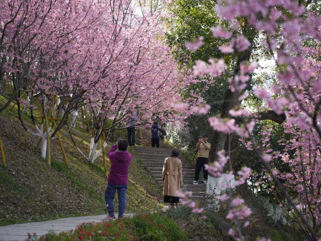 春意渐浓,市区景山公园第一批早樱——红粉佳人正竞相绽放。2月28日至3月1日,在景山公园樱花园龙盘山栈道举行樱花文化节活动,诚邀广大市民共赴这场春日里的国风雅集。