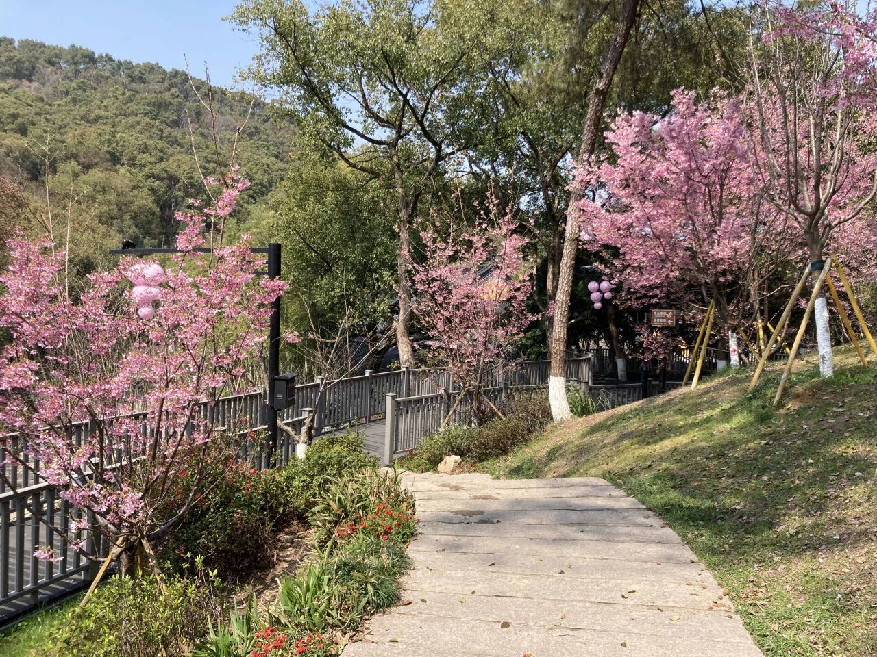 瑞安桐浦凤凰樱花谷拥有18000棵樱花树,是温州最早开花的园区,赏樱期可以从2月中下旬一直持续到4月上旬。游客可一路饱览春光,登上天空之境玻璃平台,脚下是千亩樱林,远处是飞云江蜿蜒,随手一拍都是大片,还能挑战玻璃栈道和七彩滑道,让赏樱之旅多几分刺激与欢乐。