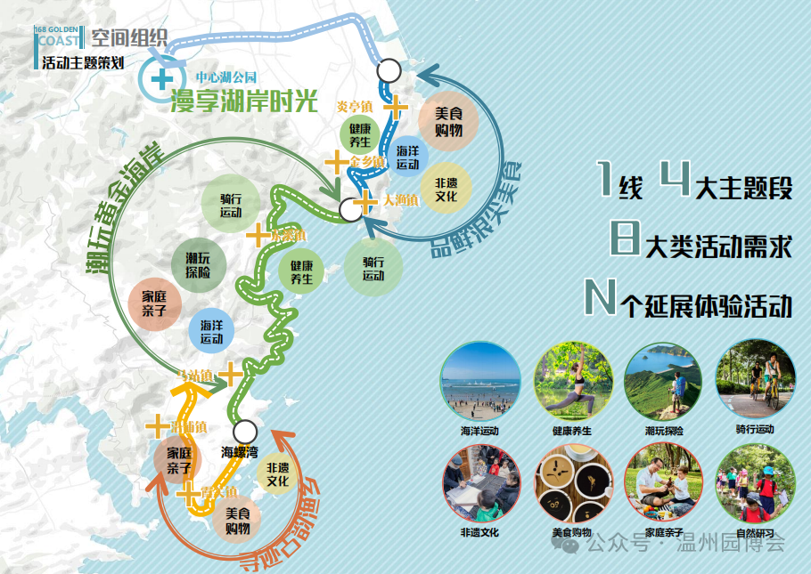 经过筛选,健康生活(苍南)分会场将渔寮作为分会场核心场地,炎亭、霞关、中心湖为博览点。构建“一线四主题”的空间格局,围绕“潮玩、品鲜、寻迹、漫享”四大主题,覆盖8类活动需求,并延伸N个特色体验项目,打造全域沉浸式健康旅游新体验。同时计划串联8个沙滩、打造30处打卡点,形成168自驾打卡地图。