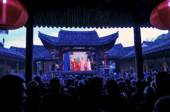 这一水系的打造,串联起村内重要公共建筑——李氏大宗祠、仁济庙和太阴庙。“这也是苍坡村最独特的地方,古代相地之术有宗祠不能靠近神坛寺观的告诫,但李氏先人不拘泥于传统,体现出了天人合一的哲学思想。”据永嘉县人大代表、苍坡李氏后人李东峰介绍,宗祠作为村内重要公共生活空间,如今每到节假日,都会有永昆表演,既为村民同乐,也是向游客展示非遗文化的窗口。