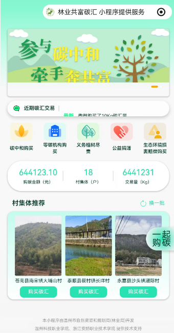 在碳达峰碳中和目标下,林业碳汇成为生态价值转化的关键抓手,2025年,温州率全省之先完成瑞安CCER造林碳汇项目公示,全国首个聚焦林业碳汇与乡村共富的微信小程序——“温州林业共富碳汇”同步上线,打通“绿水青山”到“金山银山”的转化通道。