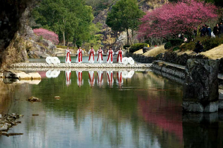在园博会开启前夕,永嘉书院已举行了为期一个月的“花漾楠溪,梅好永嘉”迎园博主题活动——梅花节。其间,上万株龙梅、白梅、腊梅等竞相绽放,形成绚烂花海;永嘉书院还结合梅花节推出汉服游园、人偶互动与西游情景剧等体验活动,让游客在暗香疏影间感受沉浸式游园乐趣。