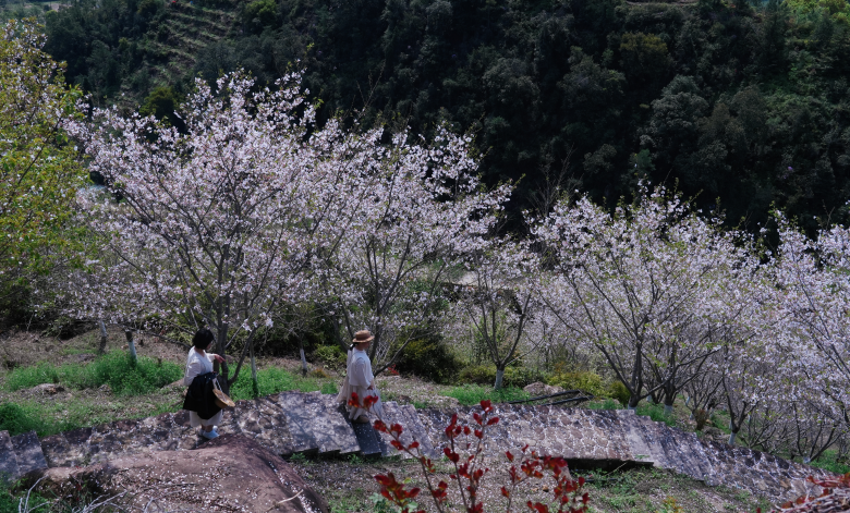 以花为媒,以园兴业。樱花园的蓬勃发展,搭建起土地流转、就业增收、农产品销售的多元共富平台,长期带动本地80余人就业,赏花季更可提供超过200个工作岗位,带动周边民宿、农家乐、乡村文旅全产业链发展,村集体与村民收入稳步提升,实现了绿水青山向金山银山的高效转化。