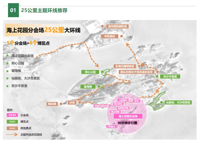 依托洞头的山海禀赋,海上花园分会场重点打造海上花园环岛南线面海视廊,精心规划25公里主题环线与5公里精品游线,将洞头的百里海岸、岛礁风光、人文景致与园博园林景观串珠成链,让每一段行程,都能邂逅园博与洞头的双向美好。