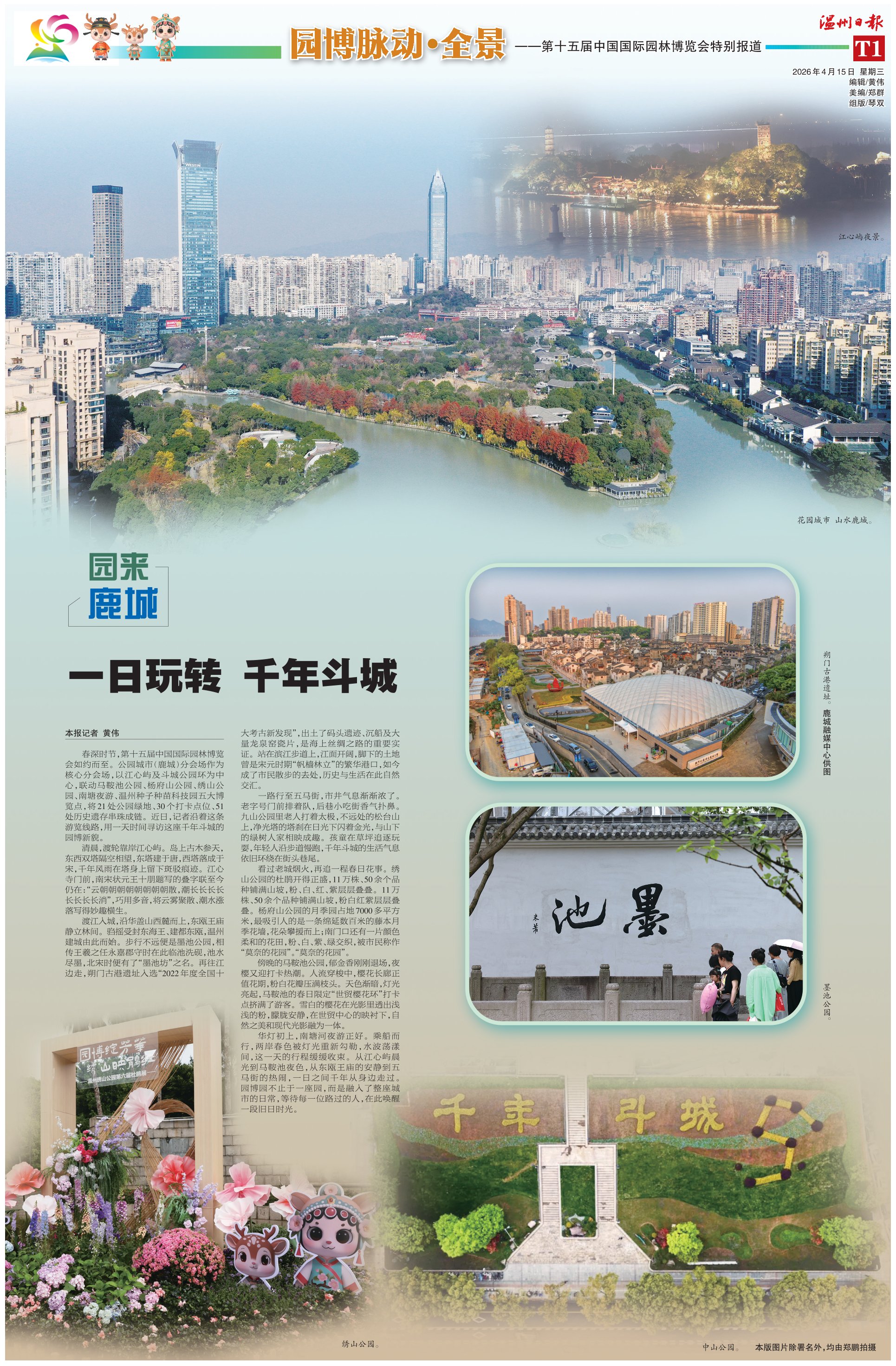 春深时节,第十五届中国国际园林博览会如约而至。公园城市(鹿城)分会场作为核心分会场,以江心屿及斗城公园环为中心,联动马鞍池公园、杨府山公园、绣山公园、南塘夜游、温州种子种苗科技园五大博览点,将21处公园绿地、30个打卡点位、51处历史遗存串珠成链。近日,记者沿着这条游览线路,用一天时间寻访这座千年斗城的园博新貌。