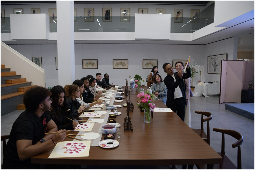 在城市湿地公园的箫逸美术馆,国际青年们在雨谷花间艺术(疗愈)雅集上学习了谷雨含义、习俗以及与牡丹的关系,品味中国茶艺、中式糕点,并在老师的指导下开展团扇绘画。在温州夹苎漆器博物馆,国际青年们参观了漆器文物,了解这一省级非遗技艺。两所艺术空间与自然湿地的无缝衔接,让他们在宁静的自然环境中触摸艺术脉搏。