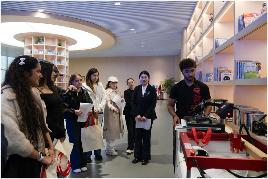 随后,国际青年们走进状如木活字的印艺小镇建筑,这里不仅是龙港印刷文化的标志,更通过文创袋拓印等互动活动,展现了传统产业向文化创意转型的生动实践。