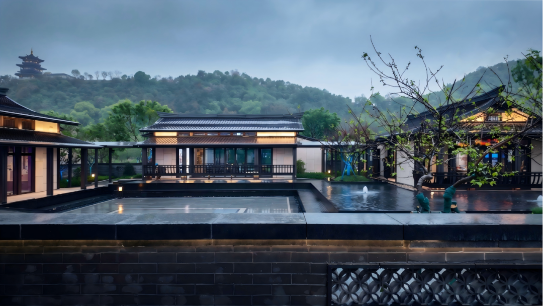 在瓯越园设计中,集团技术创新中心领衔设计瓯越园建筑群,采用楠溪江流域民居布局特色,将院落空间与聚落空间相互交融,形成多种尺度的空间体验。建筑单体沿袭传统民居意向,采用屋顶举折、多重披檐、临水檐廊等形式,展现出轻盈舒展的建筑形象,极富瓯越传统民居特色。集团下属风景园林设计院以叠山理水造园技法,将南戏、瓯塑、刻纸等瓯越非遗融入实景,精心营造东西双园、两区六景的空间格局,尽显“园藏山水、境承宋韵”的独特风貌,彰显温州山水精神与人文底蕴,为地域文化与城市公共空间有机融合提供鲜活实践样本。