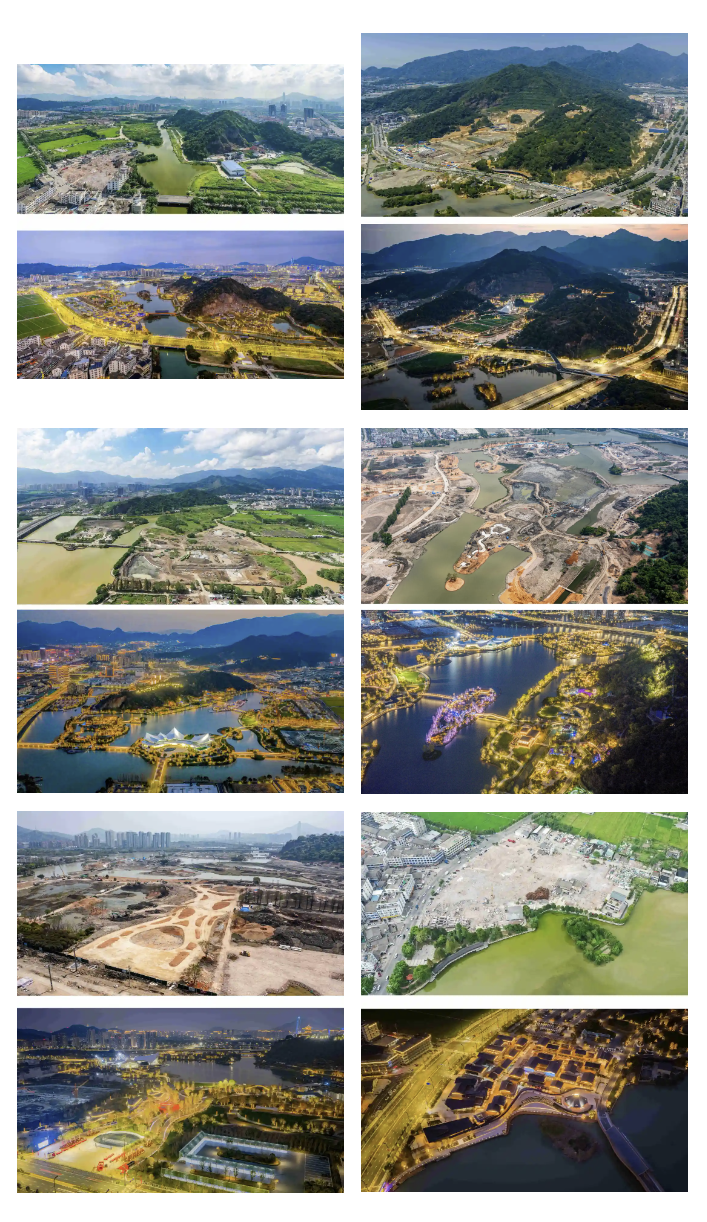 谈及为何选定“前后对比”这种呈现方式,刘吉利有着深入的思考。从专业摄影角度来说,新旧实景的反差对比视觉冲击力更强,能让观者直观沉浸式感受园区的蝶变风貌。“但更深层的考量在于,温州园博园规划建设是关乎城市发展、惠及全城百姓的民生要事。城市片区的原生肌理在迭代更新,建设时序的实景转瞬即逝,用镜头逐日逐月定格变迁轨迹、留存珍贵城建影像史料,既是摄影人的职业初心,更是一件留存城市记忆的暖心实事。”
