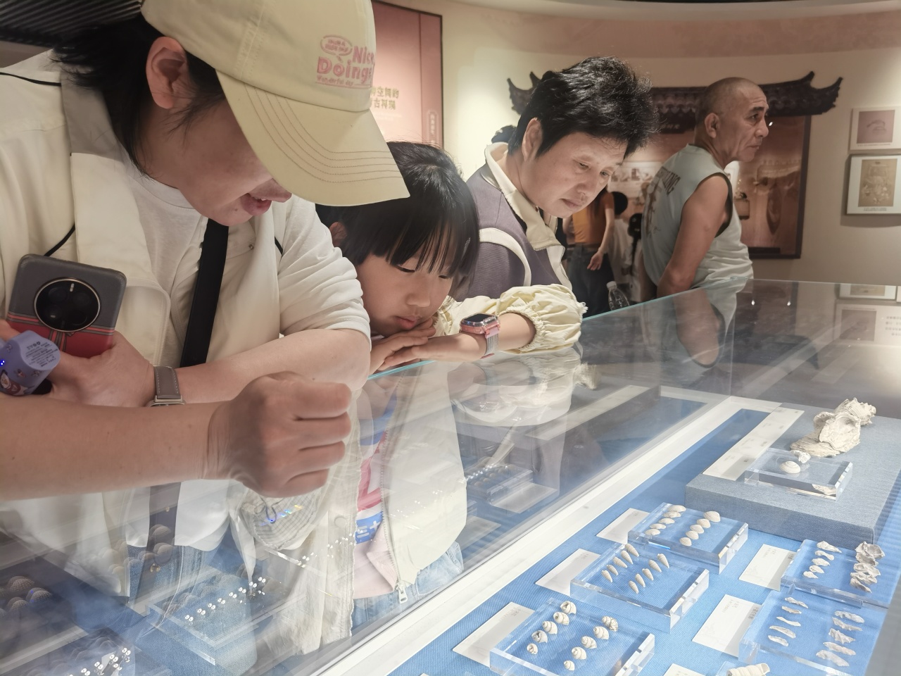 朔门古港出土文物以民用、商用器物居多。策展团队凭借细腻的展陈文字、生动的叙事视角与巧妙的互动设计,让这些寻常旧物拼合出一幅真实鲜活的港城画卷。为了让历史从展柜延伸至指尖,馆内专门设置了互动体验区。观众可通过互动装置亲手为元代石权“搬运称重”,感受大宗贸易的分量;亦可触摸不同窑口的古瓷片标本,通过触觉直接感知历史的质感与温度。