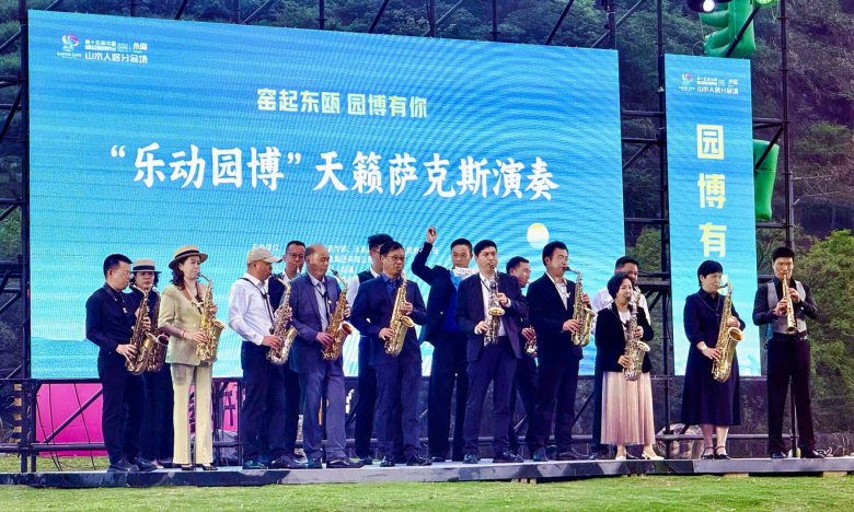 在空旷的田野边听萨克斯演奏会是一种什么样的体验?搭建在一片空旷田野边的瓯窑开窑市集主舞台,在4月16日下午上演了一场“乐动园博”天籁萨克斯演奏,10多位萨克斯爱好者轮番演奏了10多首经典萨克斯曲。
