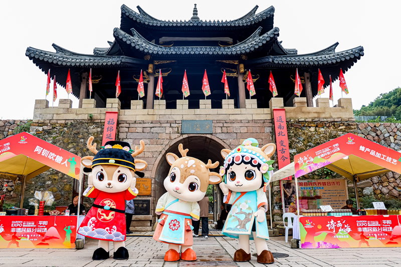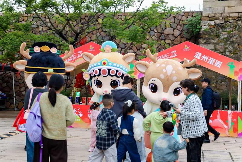 不止好逛、好看、好玩,活动现场还设置了丰富的互动环节。其中,“登坡祈福”创意体验,寓意步步登高、祈福纳吉,游客可以写下心愿、挂上福牌,踏着青石板路登坡而行,把一年的好运气“登”进生活里。园博会吉祥物人偶则与平阳特色非遗形象人偶携手在古街巡游,萌态十足,引得大人小孩纷纷上前击掌、合影,收获满满快乐与惊喜。