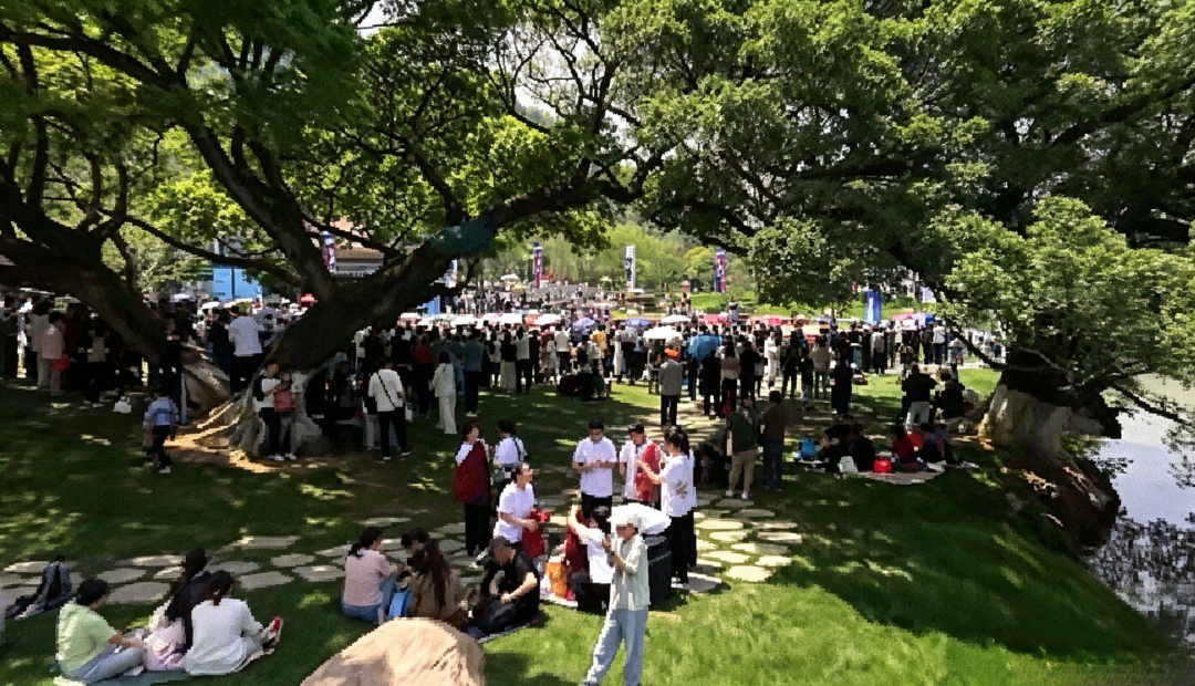 4月19日,农历三月初三,在苍南岱岭畲族乡火热举行的浙江省第十二届暨温州市第十五届“三月三”民族风情旅游文化活动,精彩内容延伸至温州园博园。作为园博园开园后的首个周末,苍南馆内人流如织,畲族歌舞、非遗技艺与特色产品集中亮相,吸引上万名游客驻足观赏、体验,让民族传统节日在城市窗口焕发新光彩。