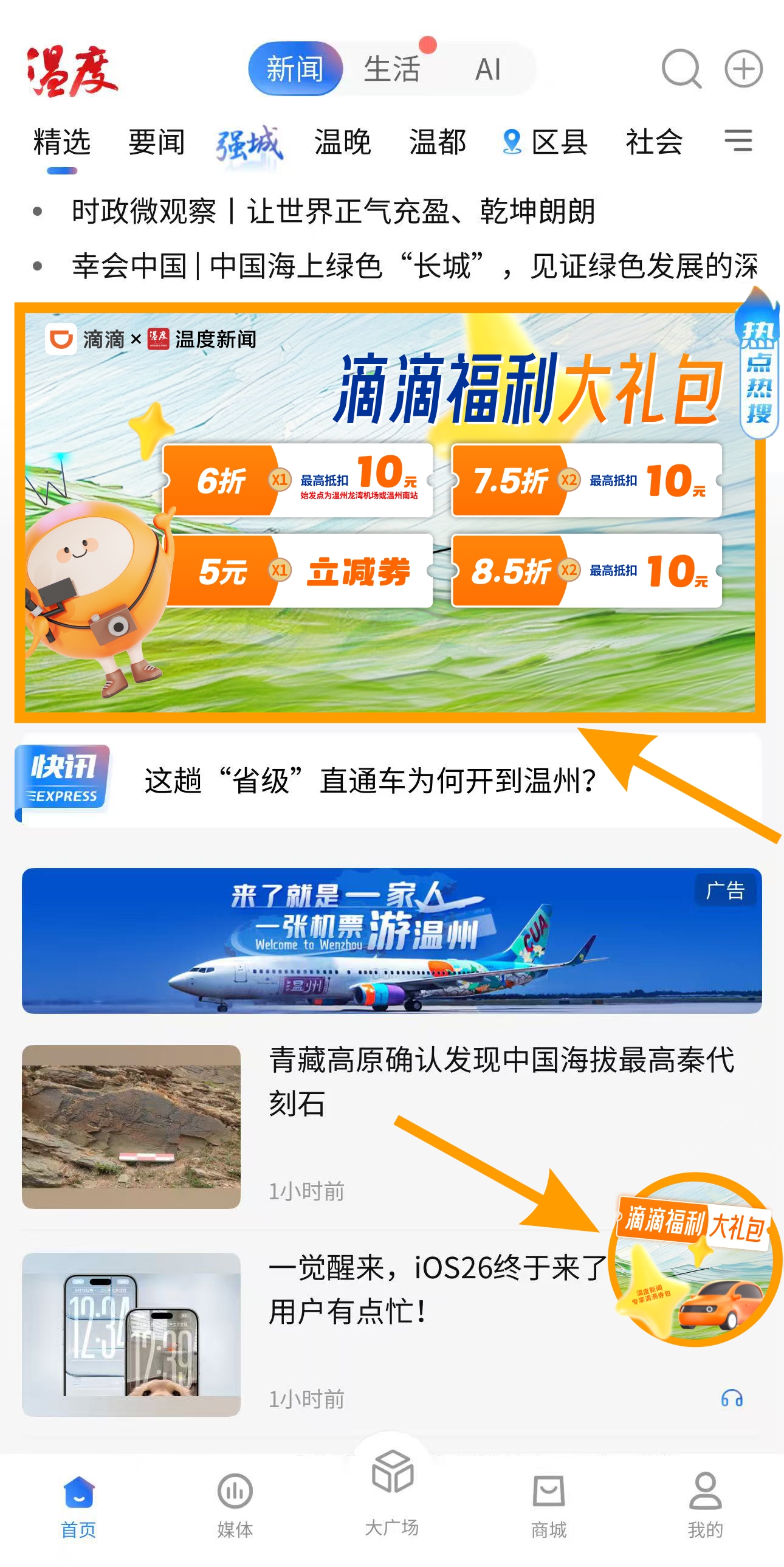 周二上温度新闻领滴滴出行大礼包