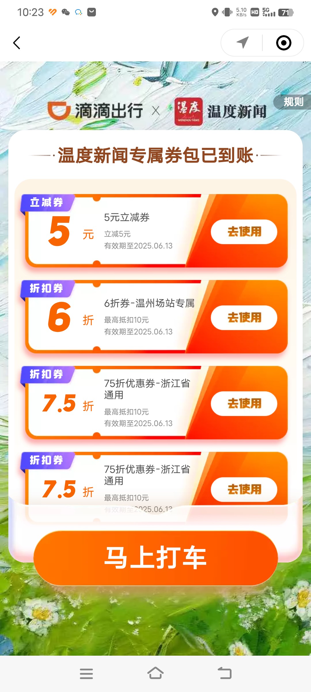 每周都能上温度新闻领取超值打车折扣券