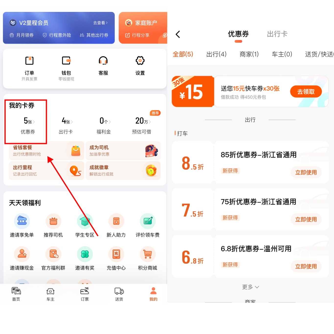 券包查看方式:下载滴滴出行APP—我的—我的卡券