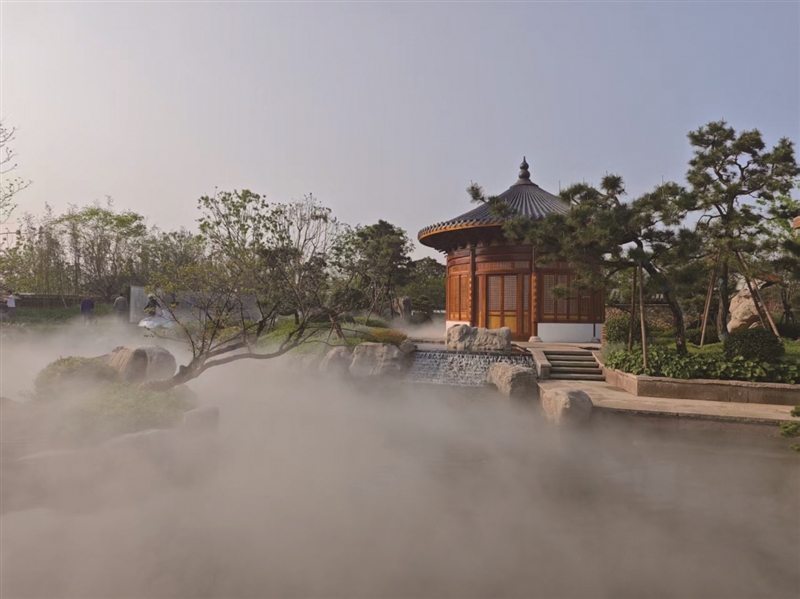 舟山园主打海洋元素,蓝色水景模拟大海,通过传统造园与现代科技结合,立体呈现“小舟山·大山水”的海派园林魅力,像去了趟普陀山,拍照很有氛围感。