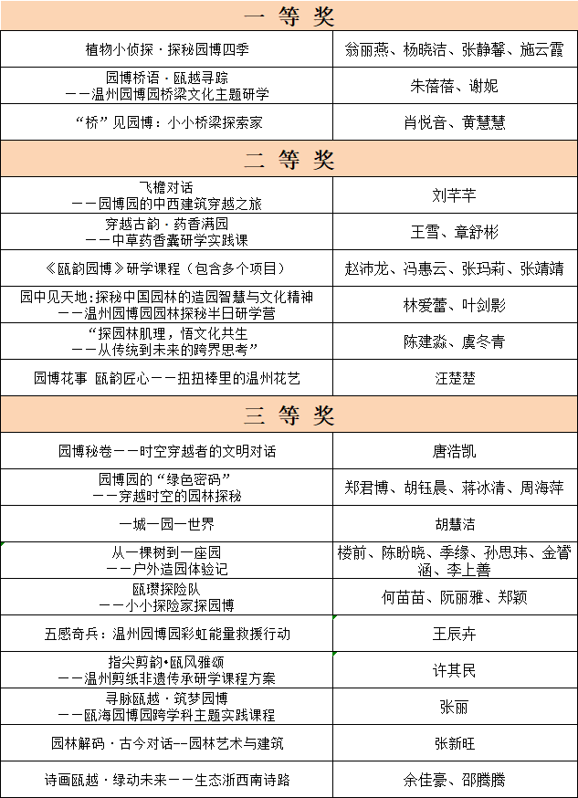 浙江省城乡规划设计研究院园林总工程师余伟则评价,19份获奖作品用多元视角解锁园博园的教育价值,展现了园林与教育碰撞出的无限可能。期待课程能尽快落地,让园博园这本“活教材”真正“活”起来,让园博的魅力传遍温州的大街小巷。