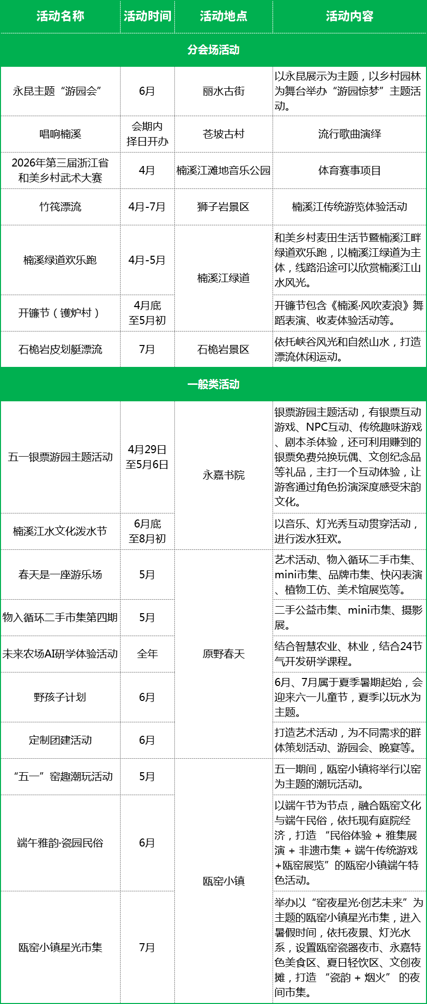 在永嘉还有10处游览点值得打卡,丽水古街、苍坡古村、楠溪江滩地音乐公园、楠溪江绿道、狮子岩景区、陶公洞、十二峰景区、崖下库景区、石桅岩景区、温州樱花园等,将楠溪风景串联成线。