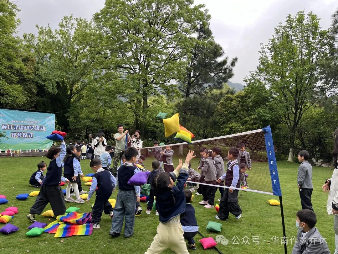 原野春天作为温州园博园永嘉分会场的核心博览点早已受到进入游客的青睐,纷纷前来游玩体验打卡。上午9时许,春雨初歇,空气清新。两辆红色大巴徐徐驶进榕树掩映的原野春天未来农场。车子停稳后,90多名小朋友身上挂着小水壶在老师的指挥下有序下车。等候在此的4名教官举着队牌欢迎孩子们的到来,他们把孩子们按照年龄分成“小花队”“小草队”“春风队”“雨滴队”4个小队,然后带领孩子们走进“山院草坪”举行开营仪式。