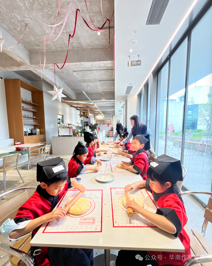 在上午的研学活动中,有一个插曲引起笔者关注。大班的14名孩子化身于永嘉非遗麦饼制作传承人。他们在餐厅里跟着老师学习做麦饼,一团面食一包馅,虽说他们没有做过麦饼,但一双小手做起麦饼来,倒也是活灵活现,有板有眼。他们把做好的麦饼经过老师焙熟后,在中餐时分一块给中班和小班的小朋友们尝尝味道,这样既懂得分享,又传递友谊。笔者称赞研学主办方想得周到,为本次研学增添了完美的注脚,对孩子的成长特别有教育意义。