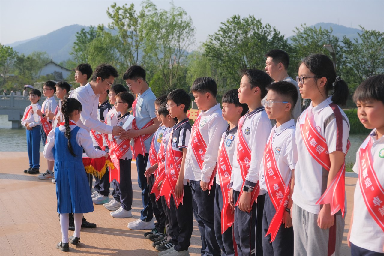 本次活动由温州市文明办、温州市文明中心、温州市委网信办主办,瓯海区委宣传部,瓯海区文明中心承办。活动现场还举行了“逐梦园博少年有礼”AI创作活动颁奖典礼,在AI海报作品与AI视频作品创作中获奖的少年们依次登台领奖。