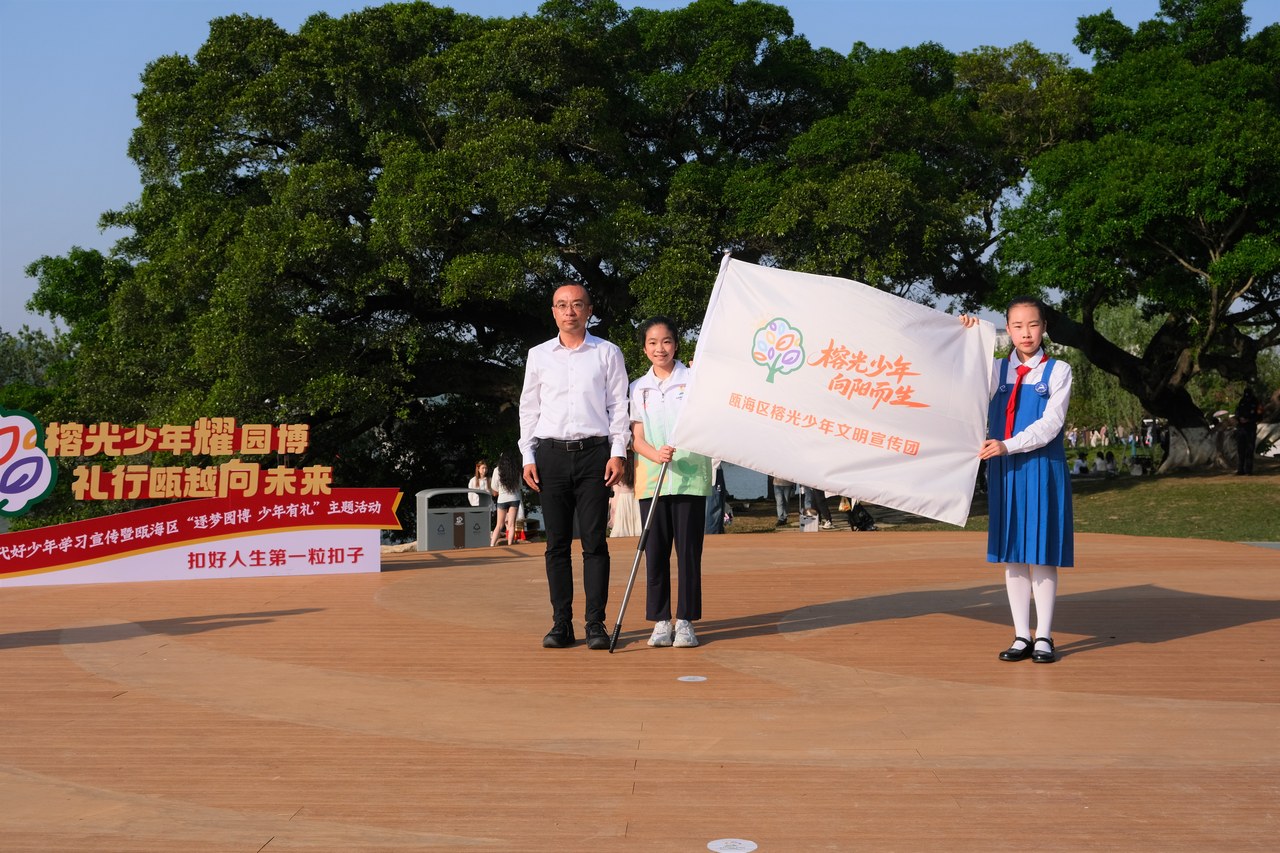 当天,在2026年温州市新时代好少年学习宣传暨瓯海区“逐梦园博少年有礼”主题活动现场,瓯海区“榕光少年”文明宣传团正式成立。经过层层选拔与严格评审,104名来自温州市各所小学的学生脱颖而出,成为温州园博园首批文明宣传员。未来,他们将陆续走上园博园各宣讲岗位,以文明宣讲的方式迎接八方来客。