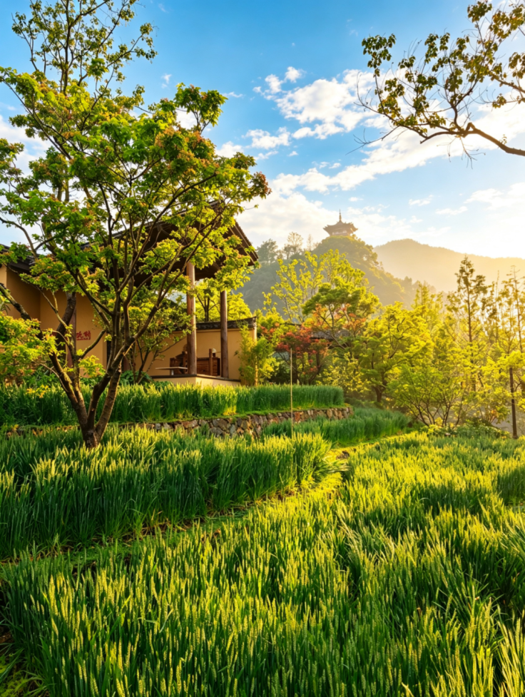 园区以“源藏千峰下,仕隐山水间”为设计理念,总面积超1800平方米,地势自西南向东北缓缓倾斜。通过堆山理水、造园布景,艺术化还原梯田肌理与乡居野趣,将生态、文化、景观融为一体,呈现一座可游、可赏、可品的丽水风韵山水园林。