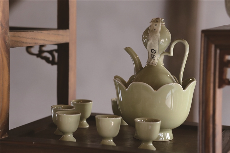 “汉臣瓯窑”店铺展示了众多精美瓯窑作品,琳琅满目。该门店由浙江省工艺美术大师、瓯窑非遗传承人娄林峰创立,依托宋元古港实景遗存,将瓯窑技艺与海丝文脉深度融合,打造瓯瓷展陈、非遗体验、文创展销于一体的文化地标。“瓯人研陶艺术馆”内陈列复刻自古港遗址的瓯窑瓷片、青瓷残件,后续将推出古法制瓷体验活动。