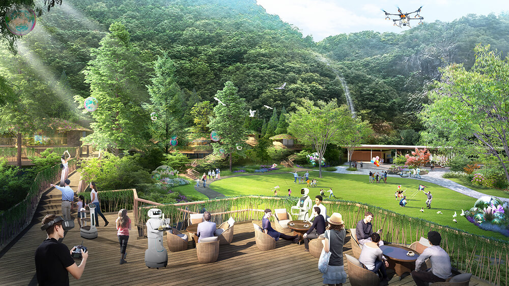 在空间布局上,北园打造为悦动生活休闲片区,布局餐饮美食、潮流零售、主题展览、文化体验、住宿休憩等业态;南园打造为悦享生态生活片区,通过挖掘片区自然生态景观优势,植入研学、科普教育、演艺、亲子露营、康养休闲、都市游憩等业态,成为可游乐、可休闲、可展示互动、可消费的公园旅游目的地。